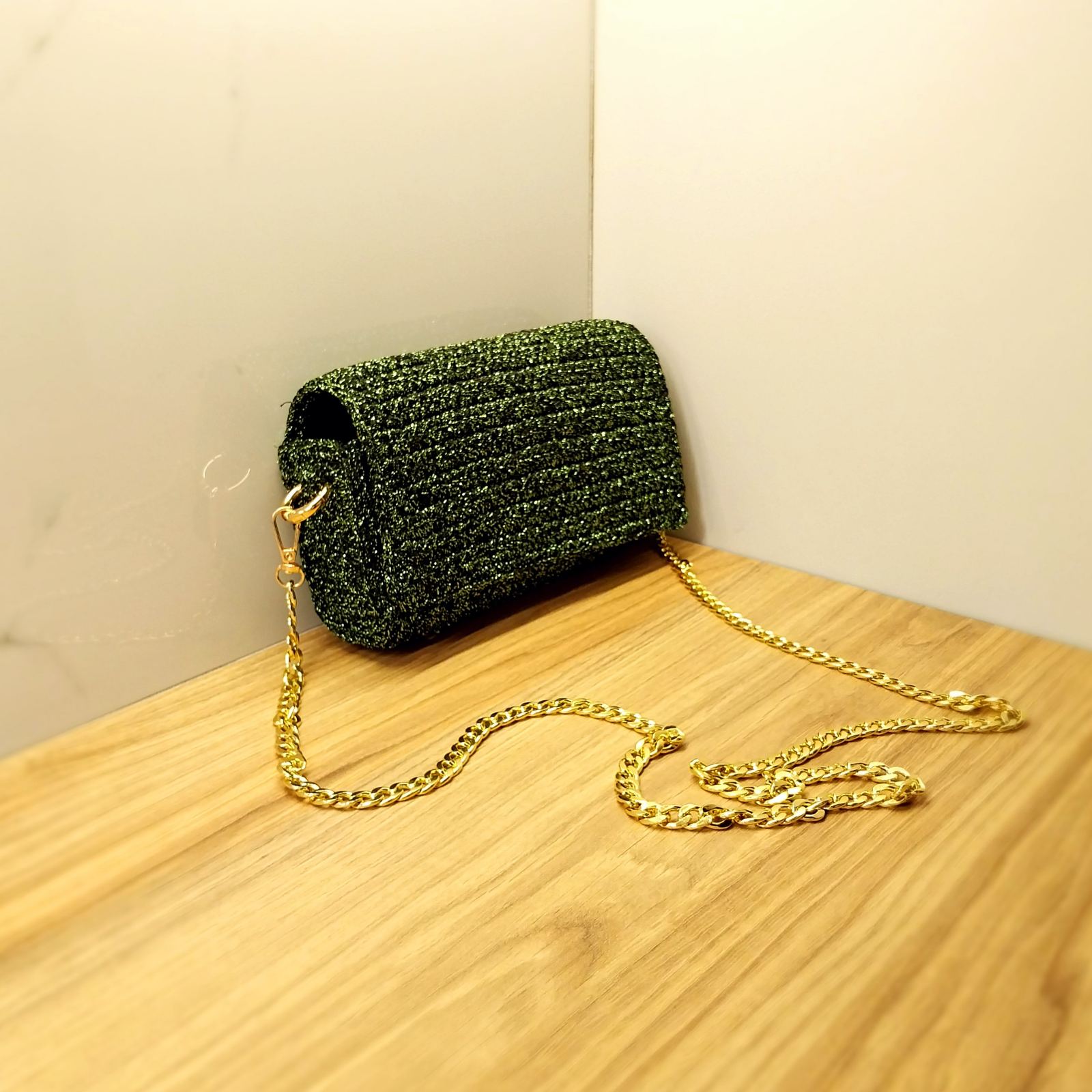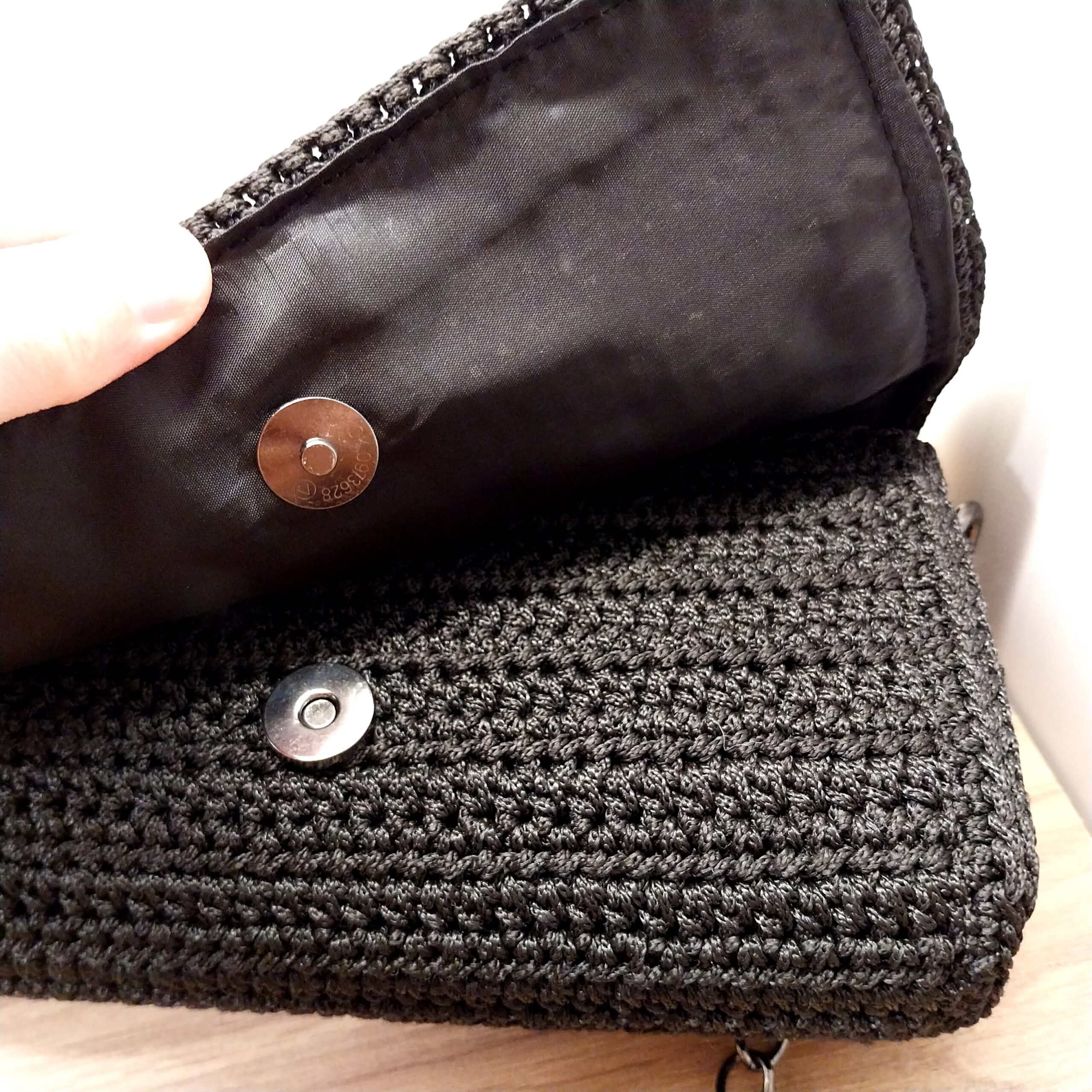 Χειροποίητη πλεκτή τσάντα με φόδρα.